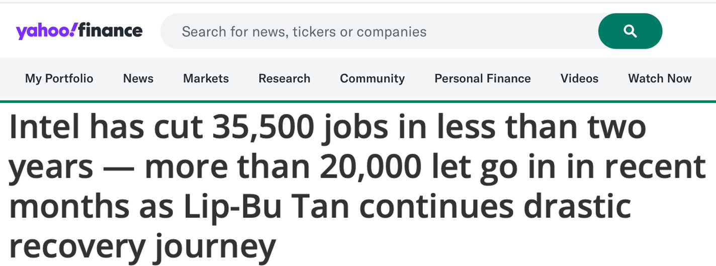 Circuit design, another field demanding tons of rigorous performance of math and logic, has also seen cuts with Intel sacking 20,000 in recent months; 35,000 in two years.