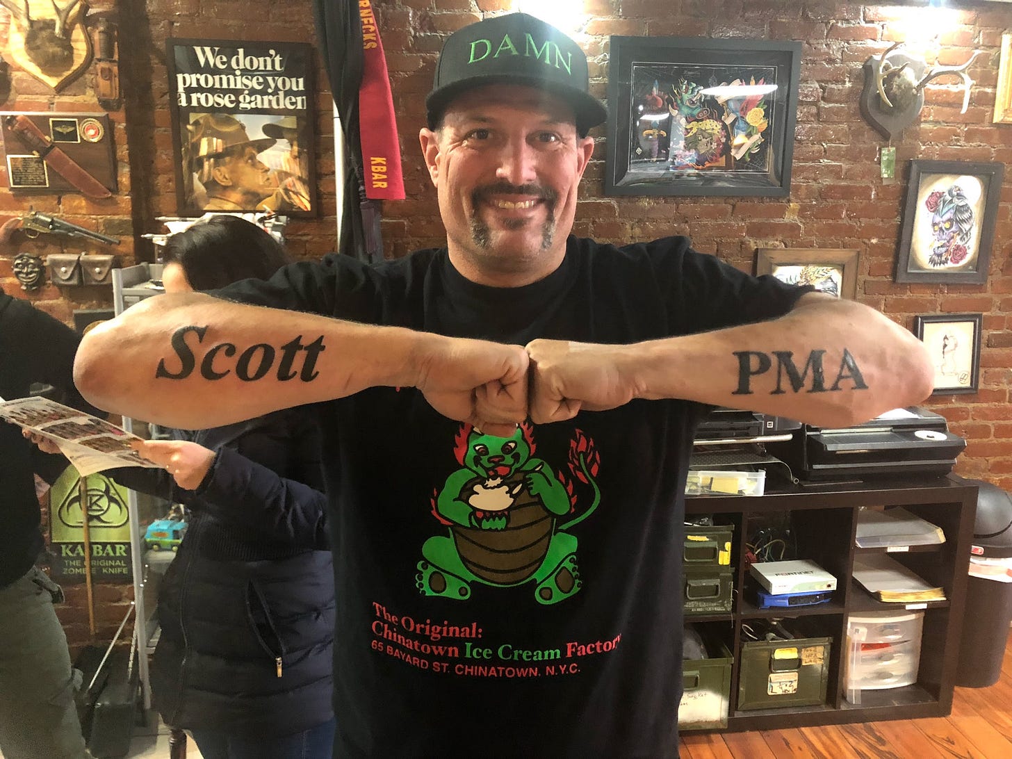 That said, LA is not a real place. First, I met a dude at the conference yesterday named Scott (my middle name) who also has a PMA tattoo on his forearm.