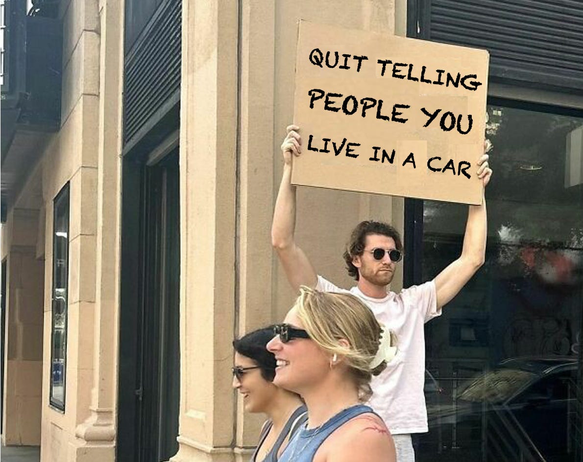 Anyway, the moral of the story is, now I see why my best friend keeps telling me: “Dude, you really need to quit telling people that you live in a van!”